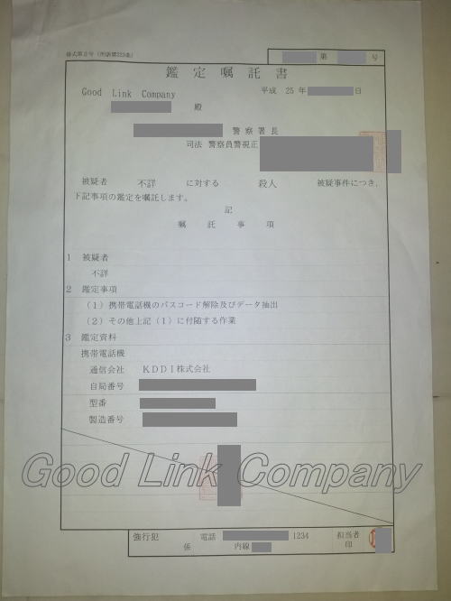 捜査資料・鑑定物の解析をご依頼される場合は、下記の書類を手配して頂く必要がある