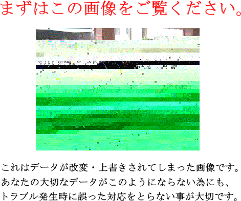 安易な気持ちでご自分で復元を試される前にデータ復元専門店へご相談ください。